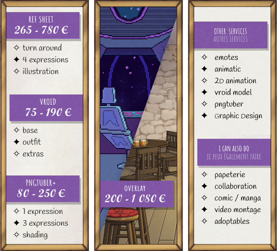 • J'accepte les paiements via Paypal ou virement bancaire uniquement si vous venez directement à moi (en dehors de vgen, ko-fi ou toute autre plateforme de commission).